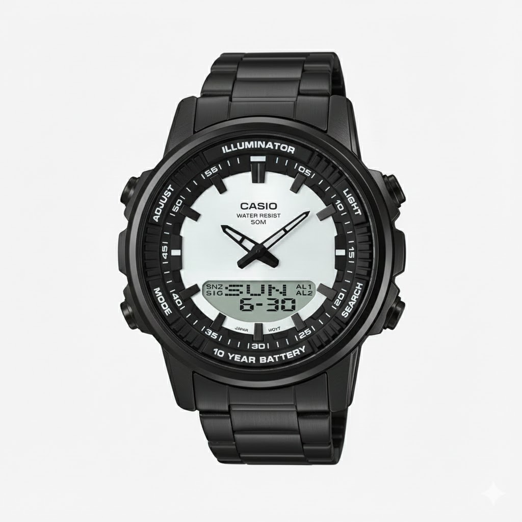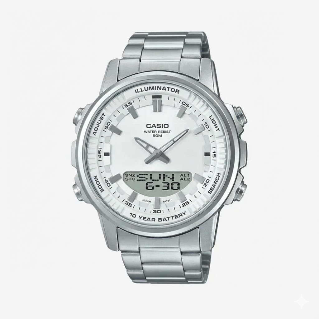 The Casio Analog-Digital Combination Watch combines classic style with modern functionality, offering both analog and digital timekeeping in one stylish timepiece.